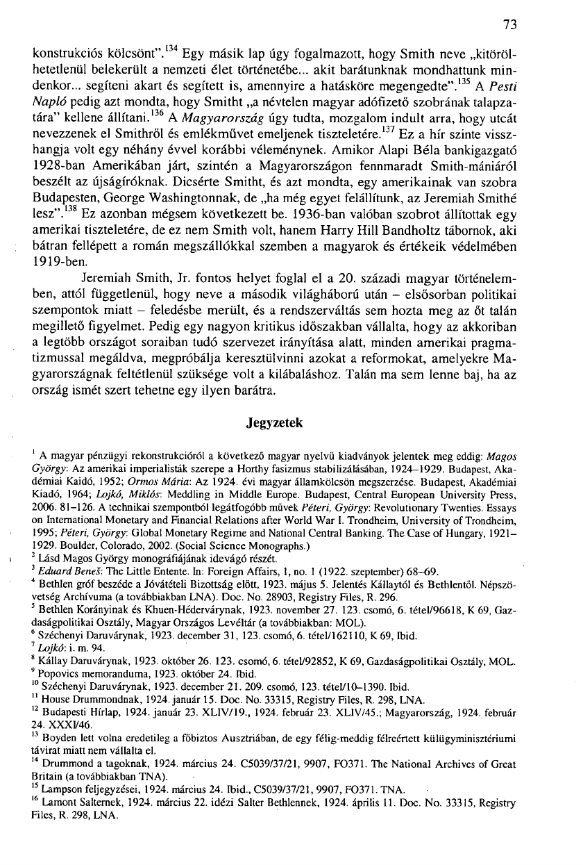 Jeremiah Smith, Jr. fontos helyet foglal el a 20. századi magyar történelem-